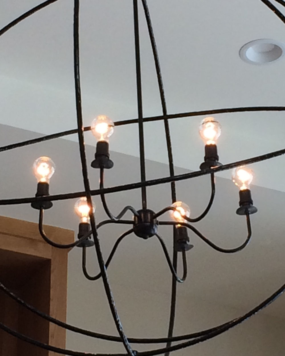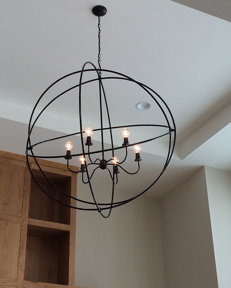 is atomic orbital rings containing a simple candelabra-necked chandelier. Minimal yet suggestive