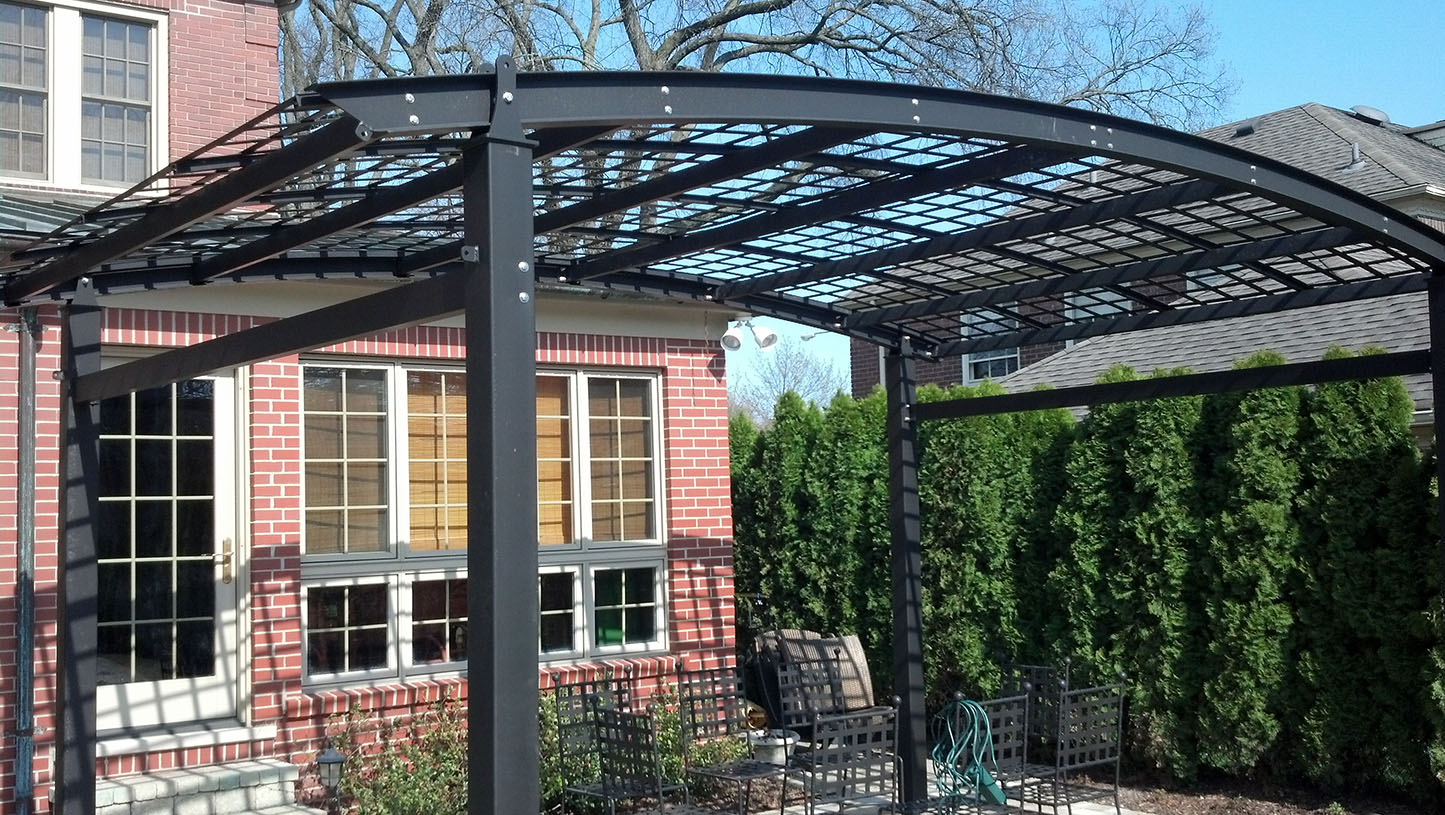 Constructed out of welded steel with a matt-black finish. The steel 'weave'
