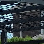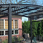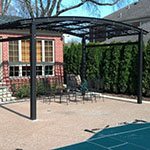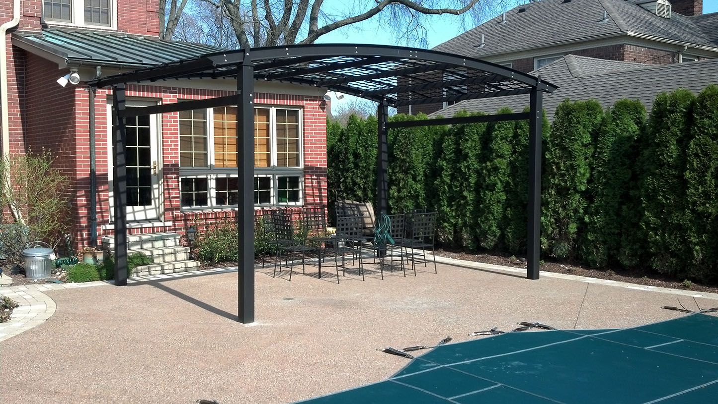 pleasantly filters sunlight in a lively pattern onto guests and poolsiders sitting underneath.