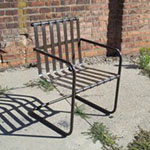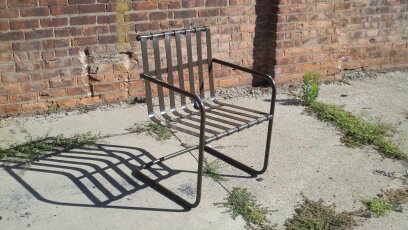 Constructed in two varieties, welded-steel chairs compliment the patio-steel overhead and loungers.