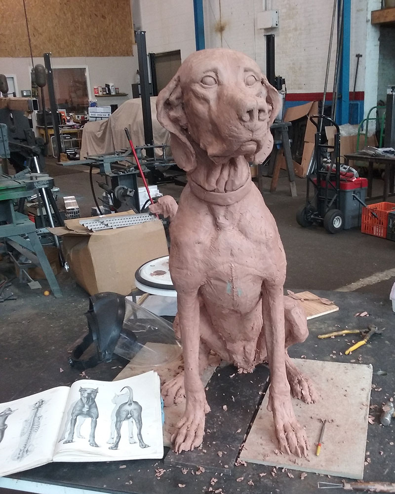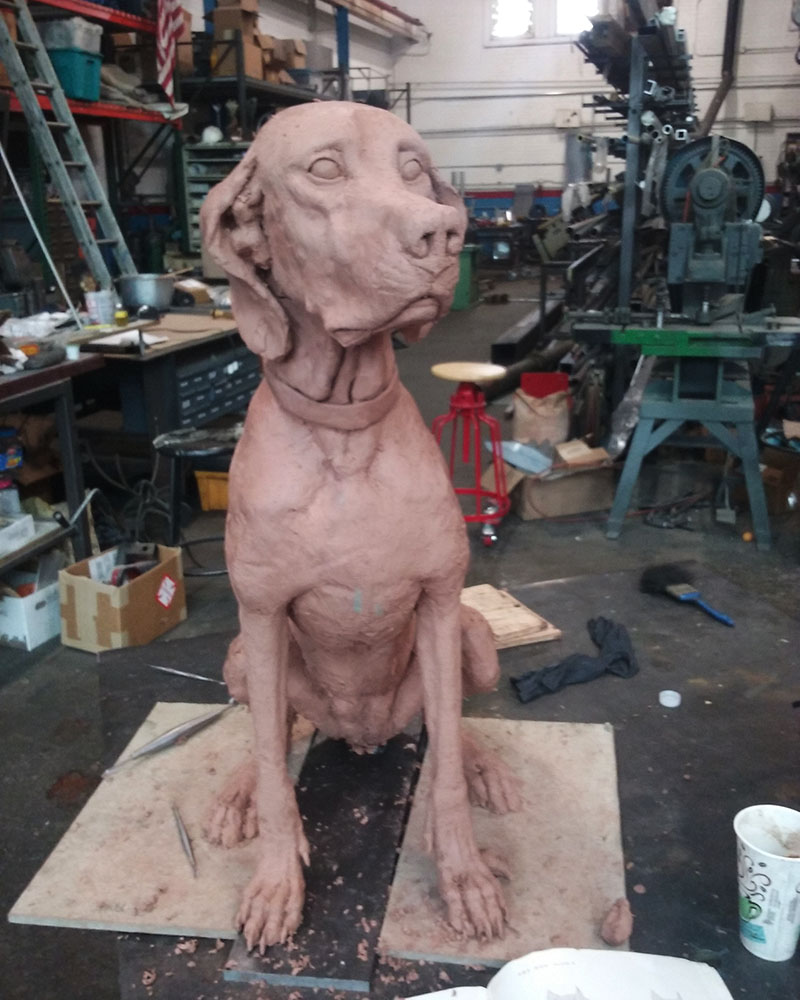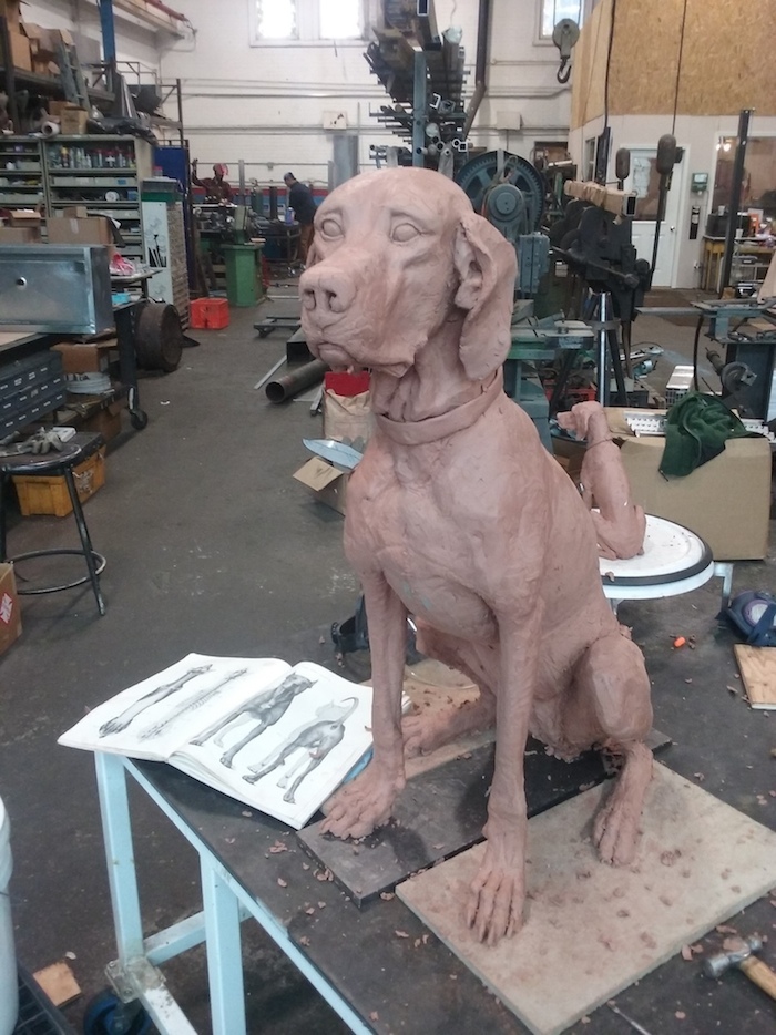 Cast in aluminum and modeled from photos of the commissioned subject, anatomical reference guides, and video footage of the breed.