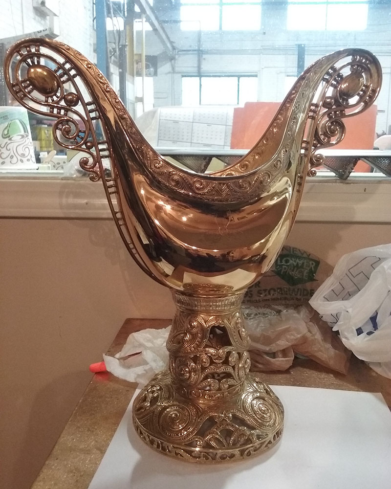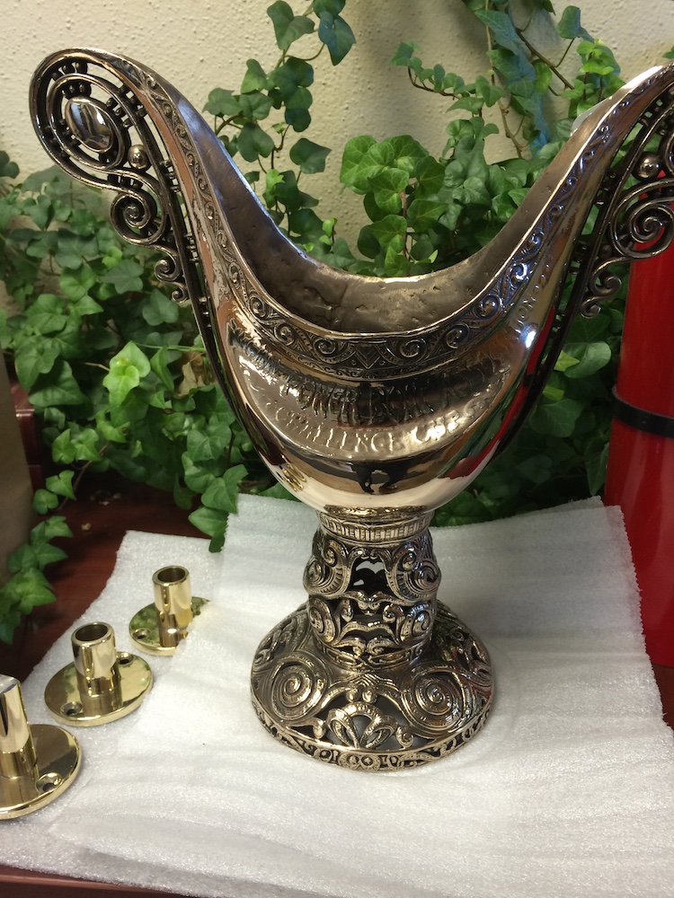 A bronze cast replica of the Gold Cup, America’s first water sports trophy.