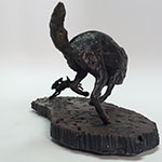 Sculpted from clay over armature wire. Cast in wax, cast in bronze with a black patina.